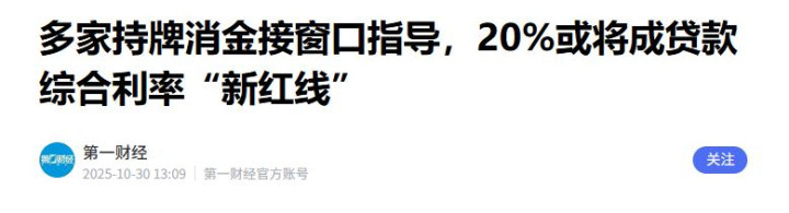 2025年10月底,一纸“窗口指导”正式下达给各大消金公司:不准再搞文字游戏!所有新增贷款,综合融资成本不得超过20%!