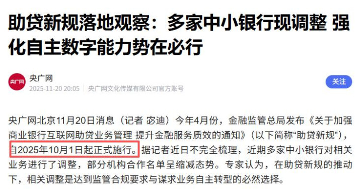 2025年4月,国家金融监管总局发布了一则看似平静却威力巨大的通知,《关于加强商业银行互联网助贷业务管理,提升金融服务质效的通知》。